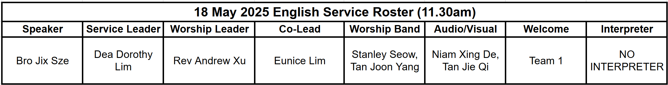 Please note that our June Combined Prayer Meeting has been rescheduled from 5 June to 6 June (Friday). This session will focus specifically on our upcoming June Fun Camp. We encourage all members, especially leaders and the camp committee, to attend.